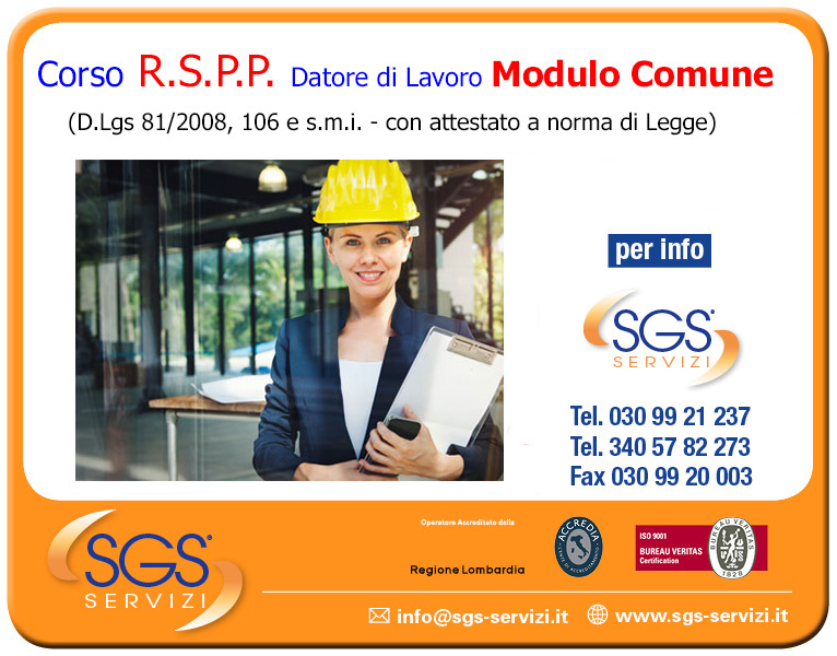 Corso Modulo aggiuntivo COMUNE da ore 8 per Datori di Lavoro che svolgono direttamente l'incarico di R.S.P.P. (D. Lgs 81 del 09 aprile 2008 art.37 comma 7 e dell’Accordo del 17 aprile 2025 n.59/CSR sancito in Conferenza tra lo Stato le Regioni e le Province Autonome di Trento e Bolzano e valido su tutto il territorio nazionale).