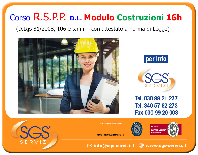 Corso Modulo integrativo da ore 16 per Datori di Lavoro che svolgono direttamente l' incarico di R.S.P.P. nel settore "Costruzioni" (D. Lgs 81 del 09 aprile 2008 art.37 comma 7 e dell’Accordo del 17 aprile 2025 n.59/CSR sancito in Conferenza tra lo Stato le Regioni e le Province Autonome di Trento e Bolzano e valido su tutto il territorio nazionale).